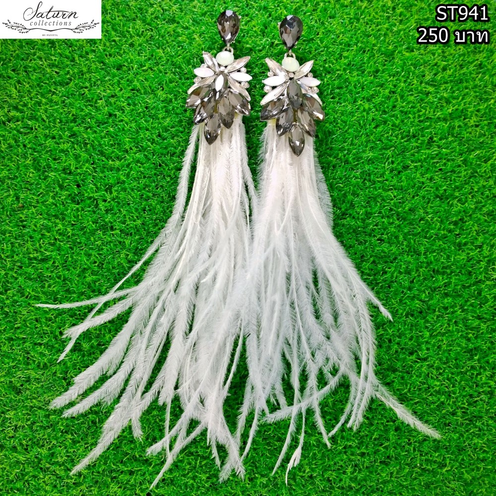 ต่างหูขนนกสีขาว ประดับเพชรสีดำ ใส่ออกงาน ไปงานแต่งงาน 250 บาท ( ( สินค้าหมดชั่วคราว ดูแบบอื่นที่คล้ายๆกันได้ด้านล่างจ้า ) )