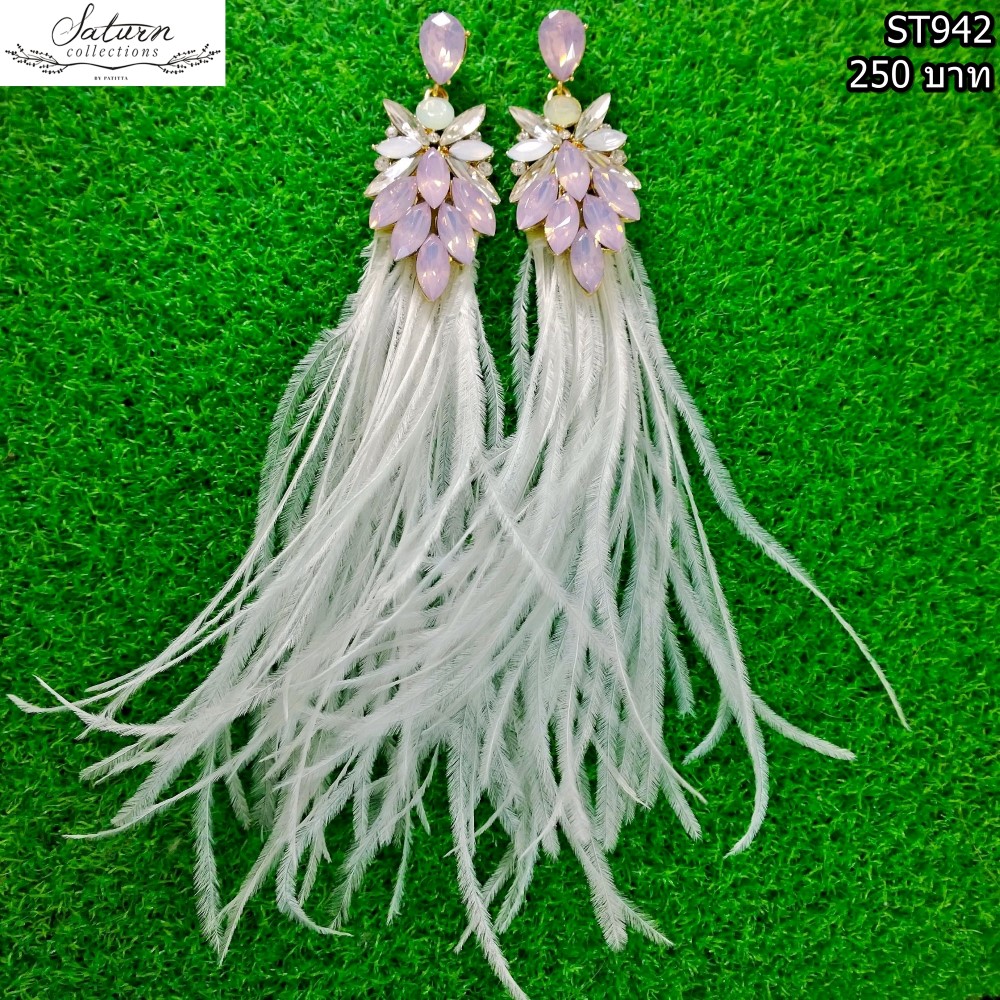 ต่างหูขนนกสีขาว ประดับเพชรสีชมพูอ่อน ใส่ออกงาน ไปงานแต่งงาน 250 บาท ( ( สินค้าหมดชั่วคราว ดูแบบอื่นที่คล้ายๆกันได้ด้านล่างจ้า ) )