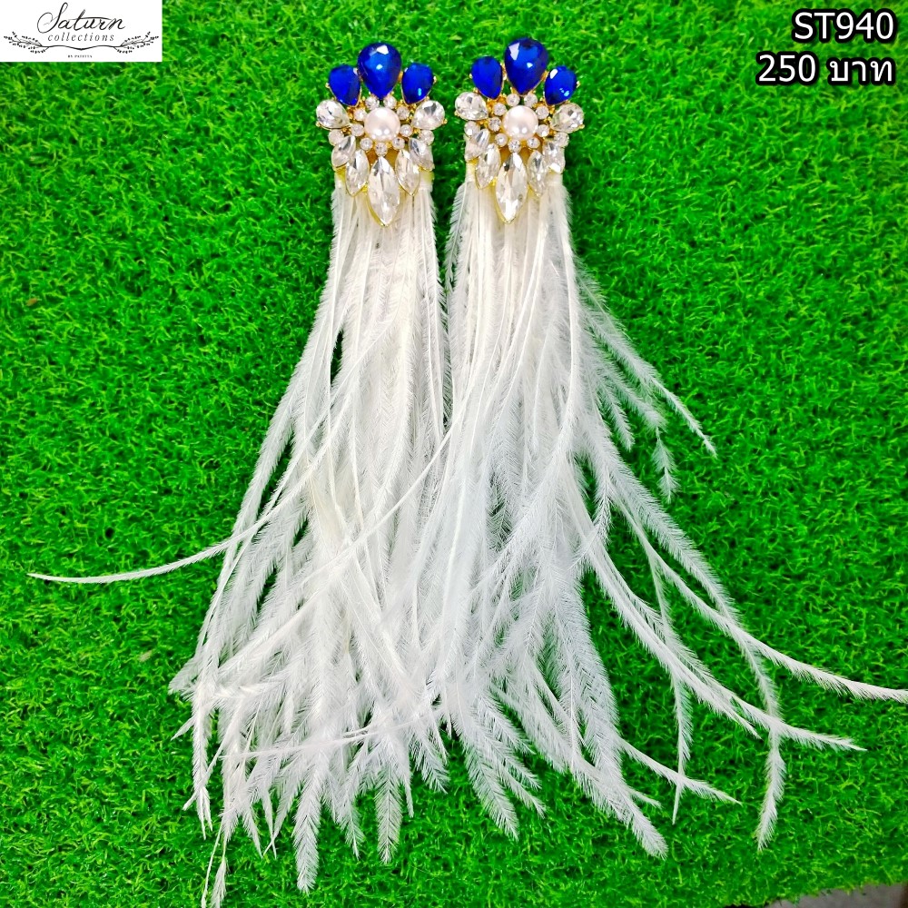 ต่างหูขนนกสีขาว ประดับเพชรอลังการสีน้ำเงิน ใส่ออกงาน ไปงานแต่งงาน 250 บาท ( ( สินค้าหมดชั่วคราว ดูแบบอื่นที่คล้ายๆกันได้ด้านล่างจ้า ) )