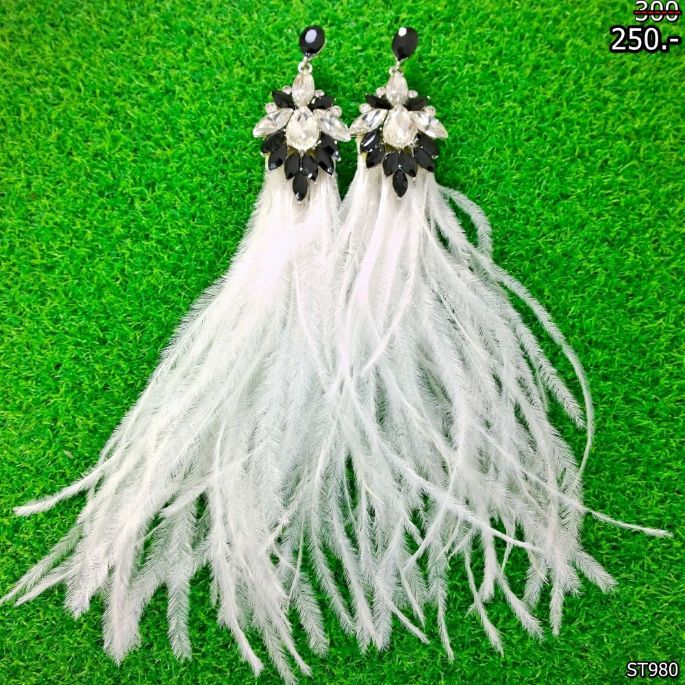 ต่างหูขนนกสีขาว ประดับเพชรอลังการสีดำ ใส่ออกงาน ไปงานแต่งงาน 250 บาท ( ( สินค้าหมดชั่วคราว ดูแบบอื่นที่คล้ายๆกันได้ด้านล่างจ้า ) )
