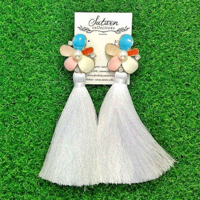 ต่างหูพู่สีขาว ST436 : 280 บาท ( ( สินค้าหมดชั่วคราว ดูแบบอื่นที่คล้ายๆกันได้ด้านล่างจ้า ) )