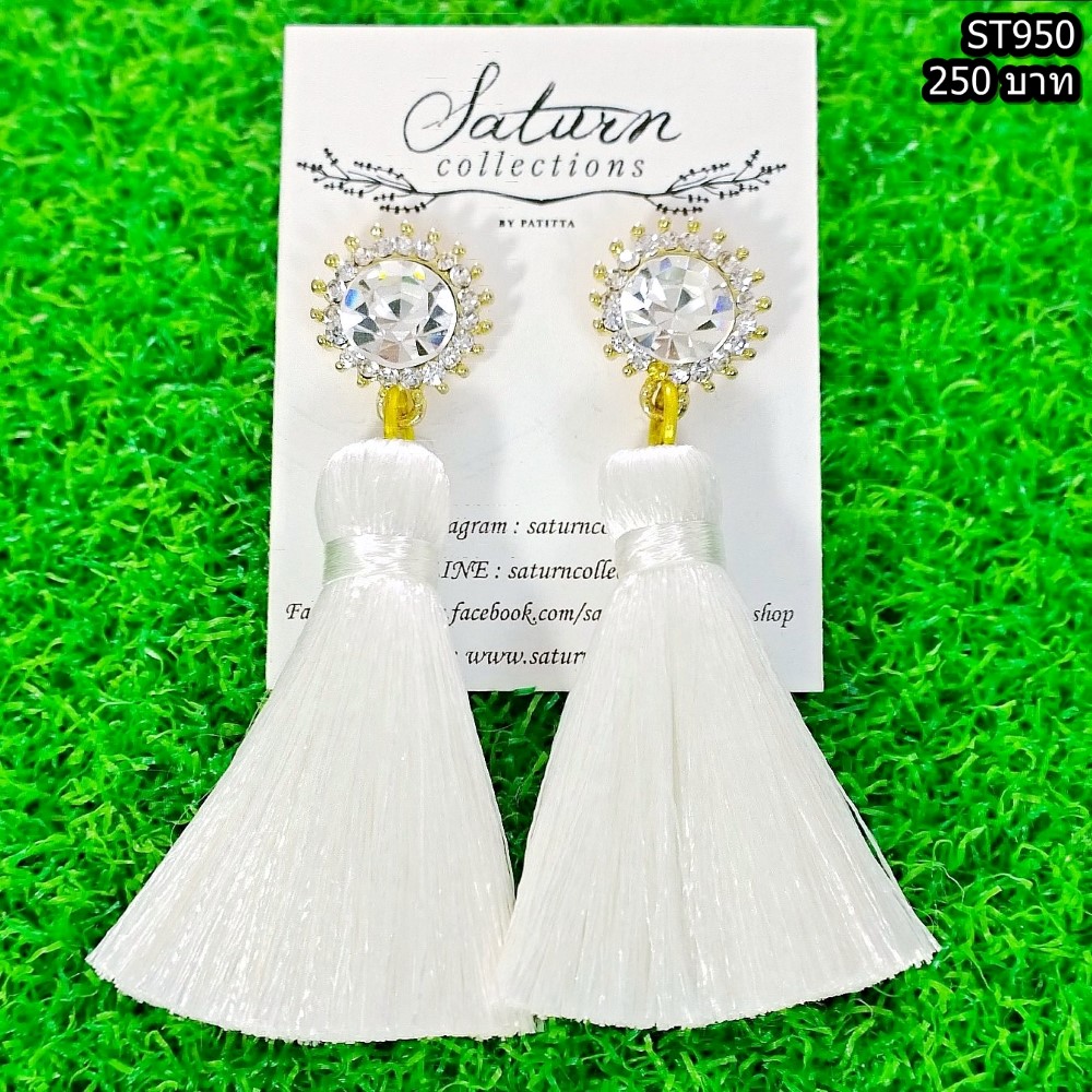 ต่างหูพู่ห้อยสีขาว ประดับเพชร ใส่ออกงาน ไปงานแต่งงาน 250 บาท ( ( สินค้าหมดชั่วคราว ดูแบบอื่นที่คล้ายๆกันได้ด้านล่างจ้า ) )