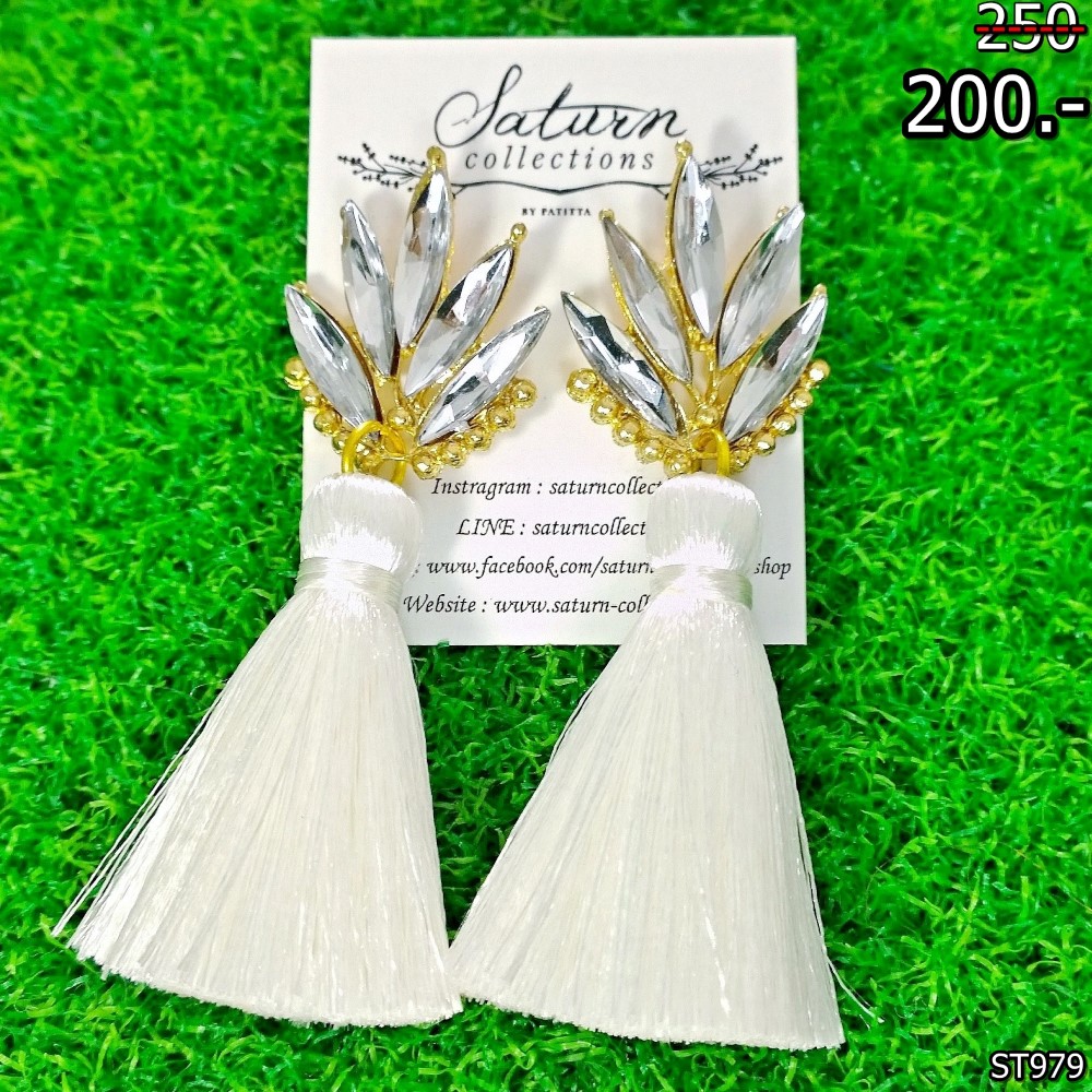 ต่างหูพู่ห้อยสีขาว ประดับเพชรแฉกๆ ใส่ออกงาน ไปงานแต่งงาน 200 บาท ( ( สินค้าหมดชั่วคราว ดูแบบอื่นที่คล้ายๆกันได้ด้านล่างจ้า ) )