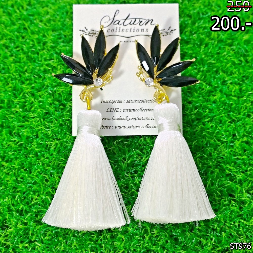 ต่างหูพู่ห้อยสีขาว ประดับเพชรแฉกๆสีดำ ใส่ออกงาน ไปงานแต่งงาน 200 บาท ( ( สินค้าหมดชั่วคราว ดูแบบอื่นที่คล้ายๆกันได้ด้านล่างจ้า ) )