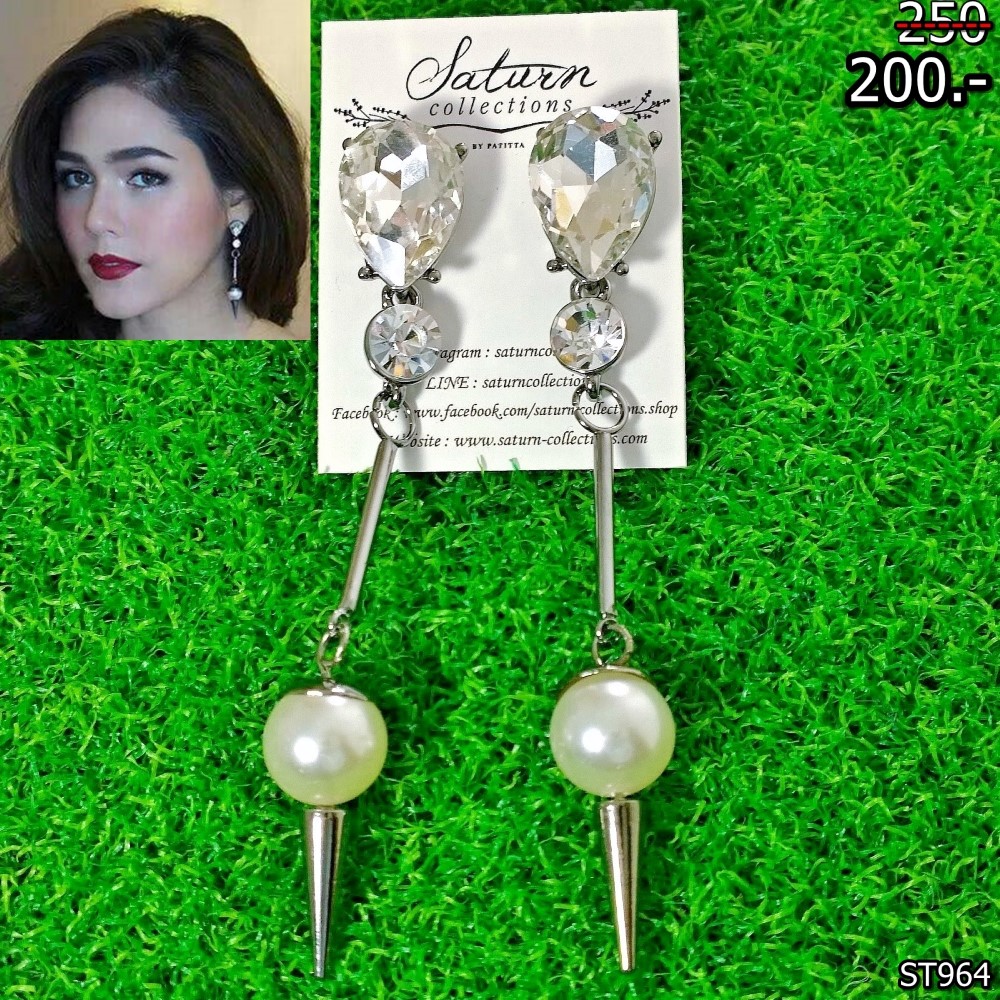 ต่างหูเพชรตุ้งติ้งประดับมุกเหล็กแหลม สีเงิน ชมพู่ใส่ สวยมากๆ ใส่ออกงาน ( ( สินค้าหมดชั่วคราว ดูแบบอื่นที่คล้ายๆกันได้ด้านล่างจ้า ) )