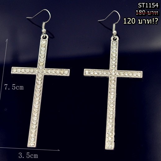 120 บาท! ต่างหูตุ้งติ้ง รูปไม้กางเขน ประดับเพชรสีเงิน ( ( สินค้าหมดชั่วคราว ดูแบบอื่นที่คล้ายๆกันได้ด้านล่างจ้า ) )