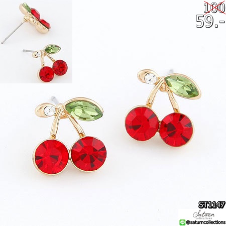 59 บาท! ต่างหูเชอร์รี่เล็กๆน่ารัก ประดับเพชร สวยสุดๆ ( ( สินค้าหมดชั่วคราว ดูแบบอื่นที่คล้ายๆกันได้ด้านล่างจ้า ) )