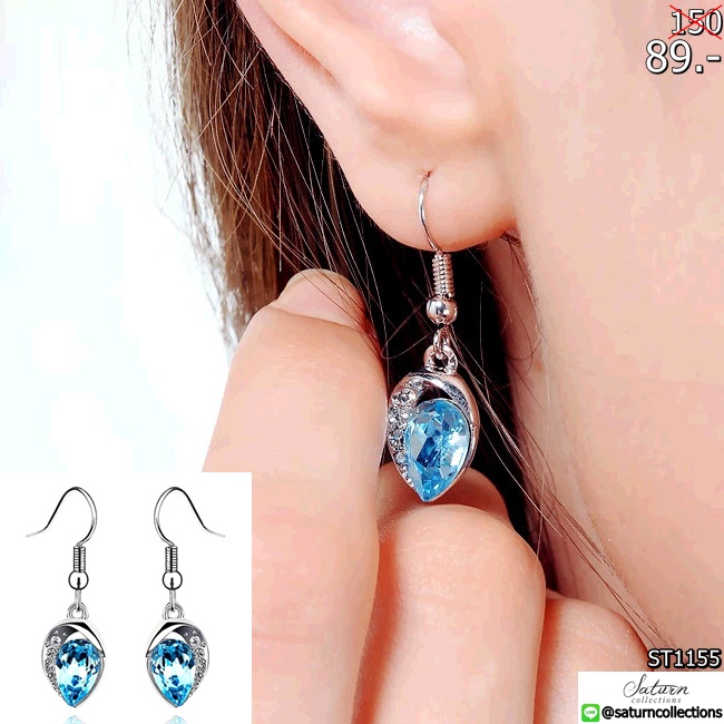 89 บาท! ต่างหูตุ้งตุ้ง ห้อยเพชรสีฟ้าทรงหยดน้ำ โครงสีเงิน สวยสุดๆ ( ( สินค้าหมดชั่วคราว ดูแบบอื่นที่คล้ายๆกันได้ด้านล่างจ้า ) )