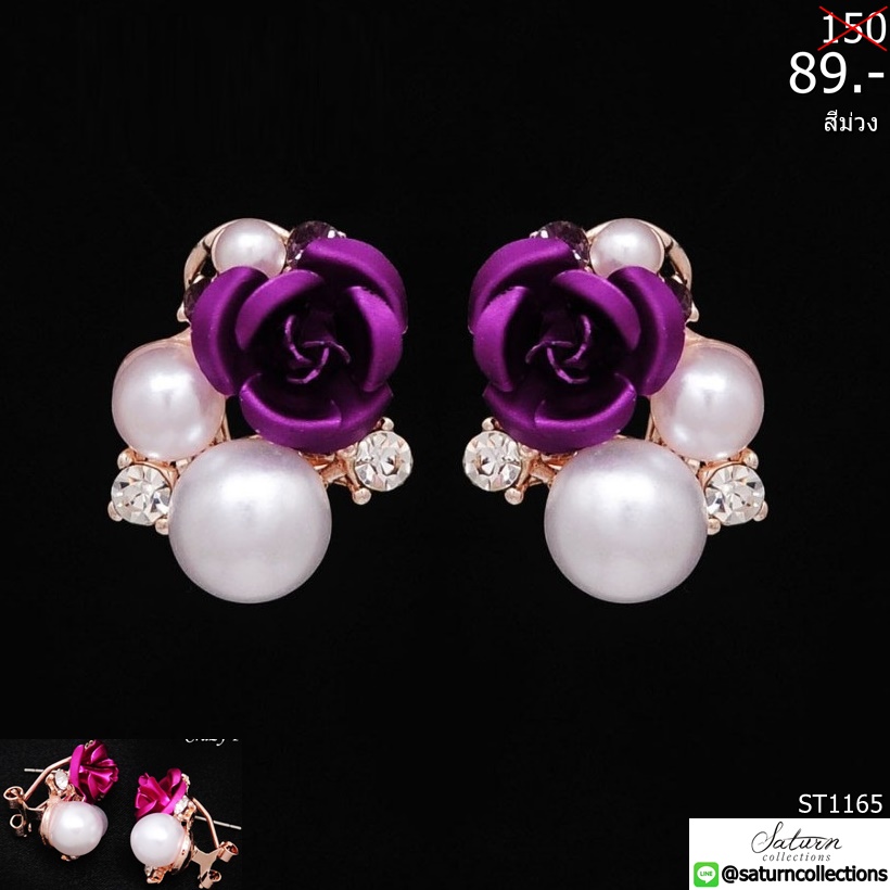 89 บาท! ต่างหูเล็กๆแบบติดหู รูปกุหลาบสีม่วง ประดับมุกและเพชรสีเงิน ( ( สินค้าหมดชั่วคราว ดูแบบอื่นที่คล้ายๆกันได้ด้านล่างจ้า ) )