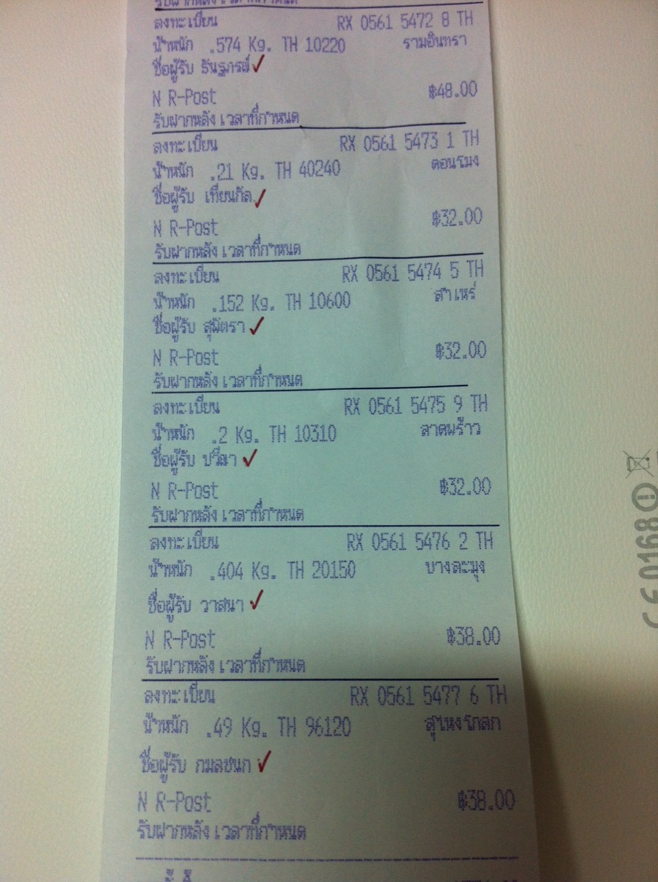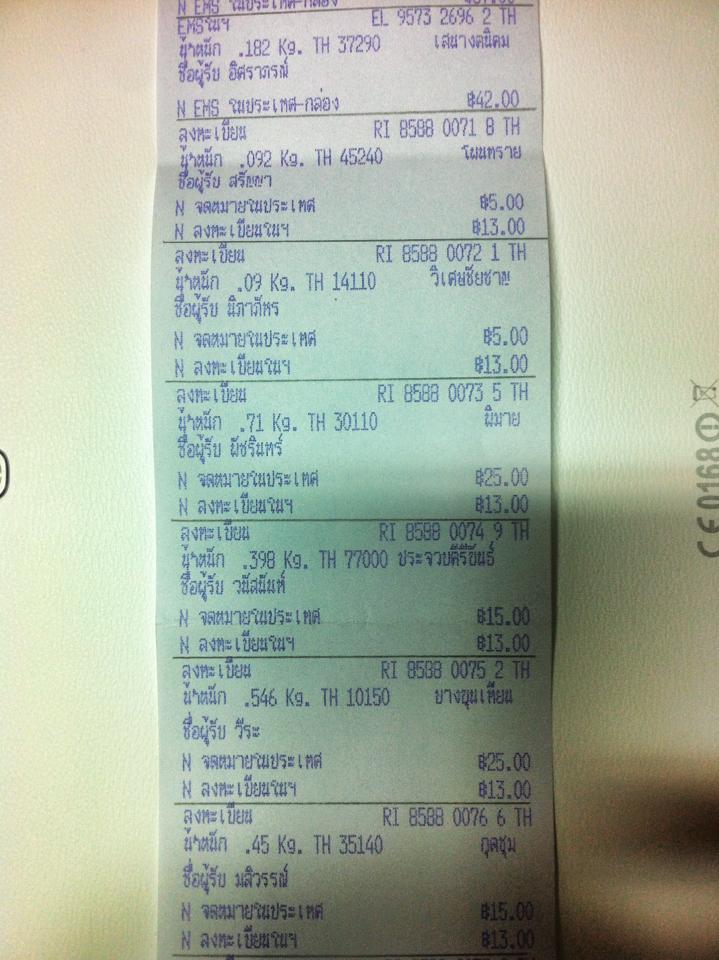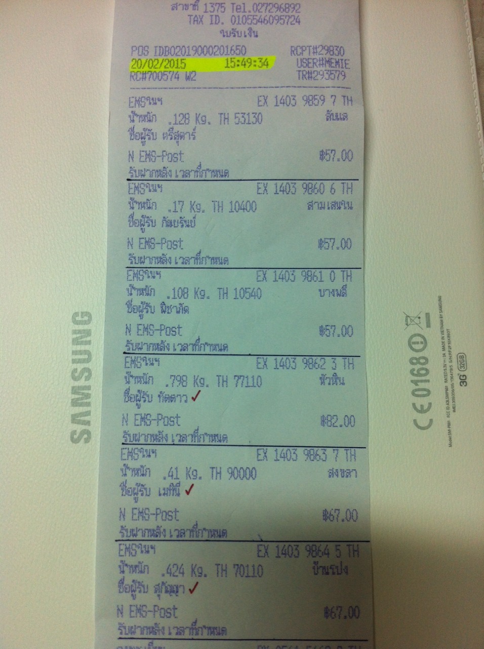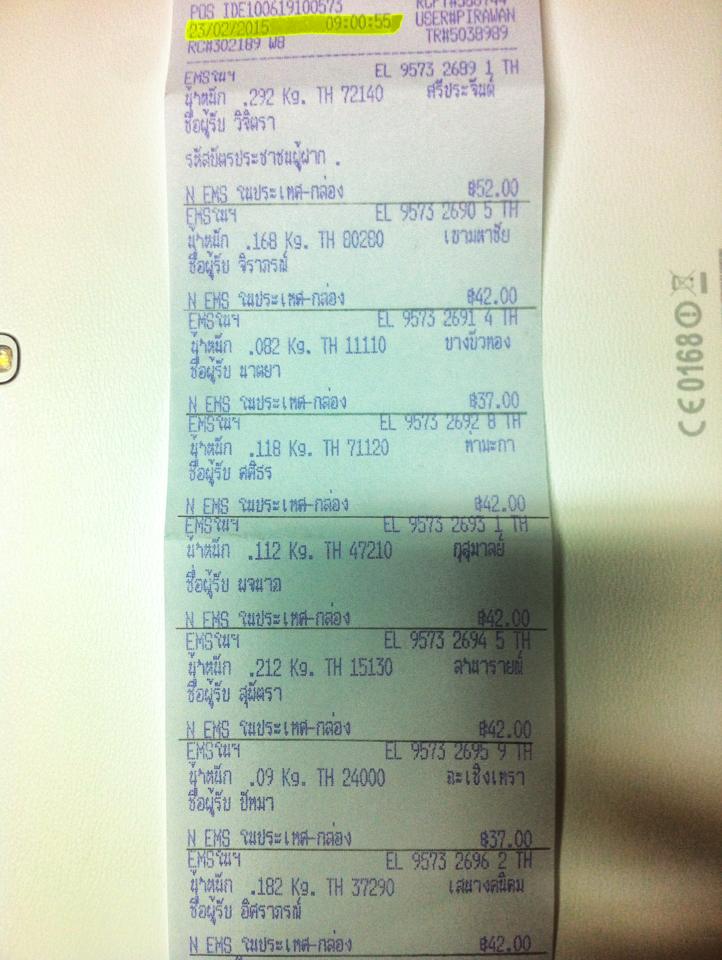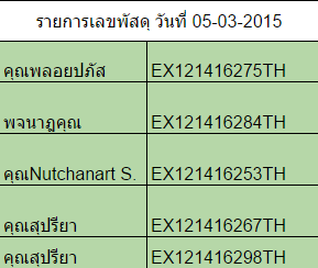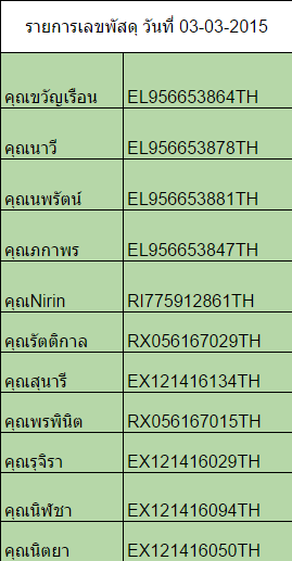 เลขพัสดุสินค้าวันที่ 20 กุมภาพันธ์ 2558