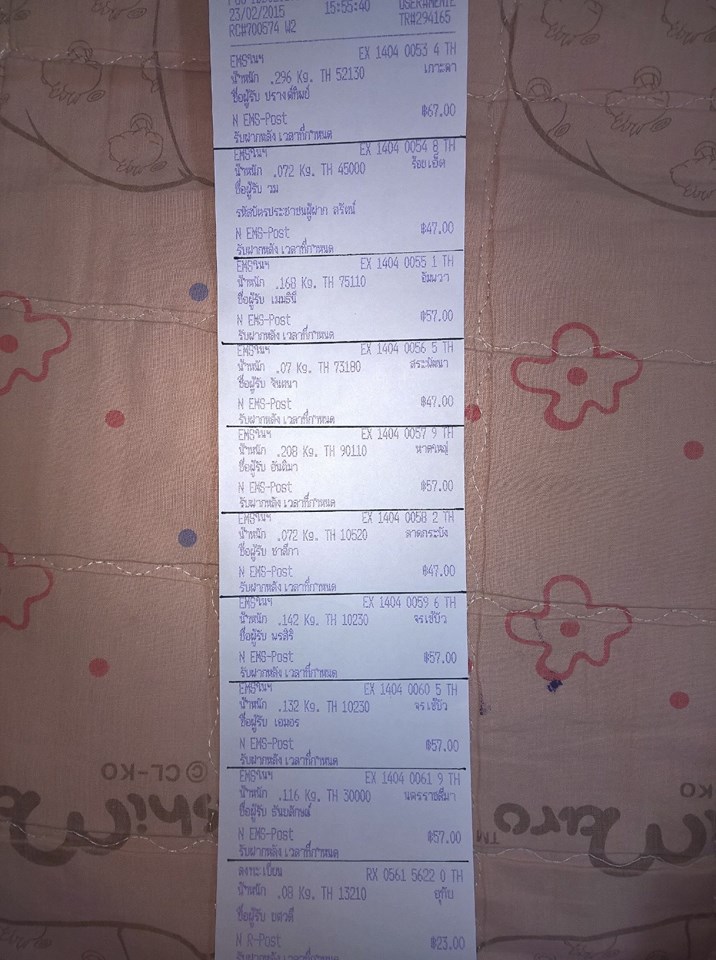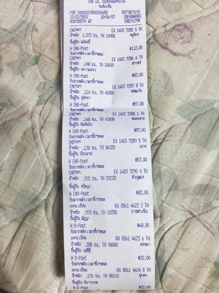 เลขพัสดุสินค้าวันที่ 15 กุมภาพันธ์ 2558