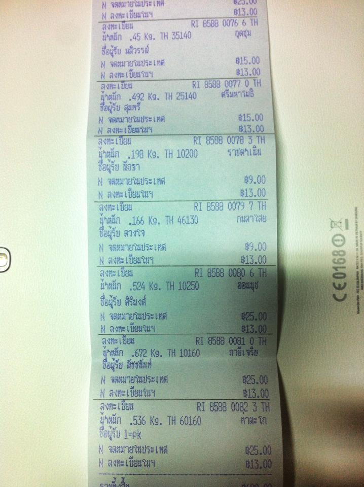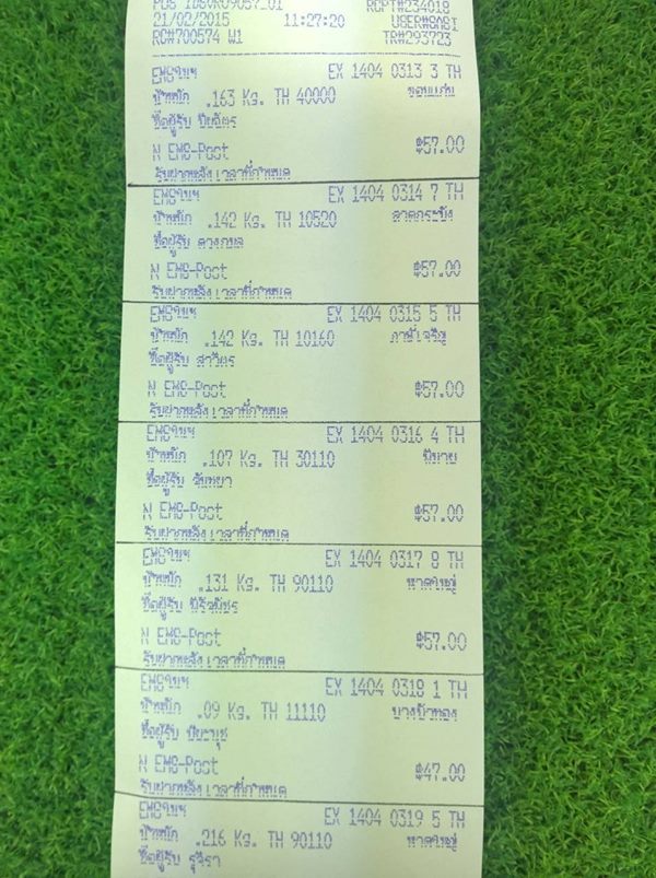 เลขพัสดุสินค้าวันที่ 17 กุมภาพันธ์ 2558