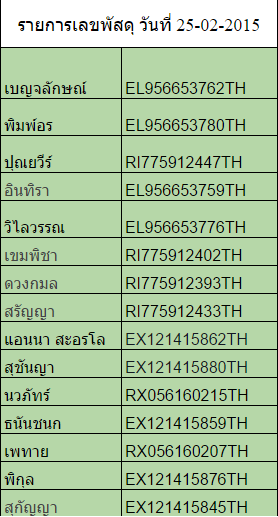 เลขพัสดุสินค้าวันที่ 25 กุมภาพันธ์ 2558