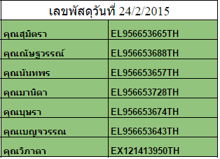 เลขพัสดุสินค้าวันที่ 24 กุมภาพันธ์ 2558